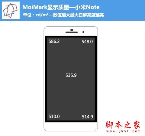 在显示环节中,小米Note加入了“屏幕效果”调整,分为屏幕优化和色温,此外还提供了便于用户长时间阅读的“护眼模式”,甚为贴心。当然,针对屏幕的测试,MoiMark实验室是将屏幕调整至最大亮度测试手机的最大白屏/黑屏亮度。从客观测试结果显示,小米Note的屏幕亮度飙到500以上cd/m²。具体看测试结果。