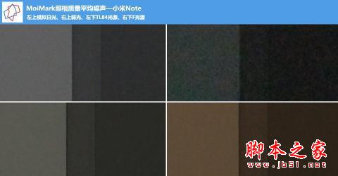 小米Note整体的拍照水平均压线和超越MoiMark推荐分值,由于该机没有一味的追求高解析力对被摄物体边缘的锐化表现,所以噪声并未受到影响。在MoiMark实验室,三种场景四种光源下,RGB色频及Y明度的噪声值分别为0.79(模拟日光)、1.69(模拟弱光)、0.66(商场酒店)、0.70(模拟室内),除弱光环境下产生了较明显的噪点外,其他场景下噪点抑制均很到位,具体看我们截取100%灰色块的结果。