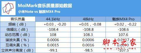 小米Note给出的HiFi,是使用ESS ES9018 K2M音频解码芯片,运放电路由两颗ADI ADA4896和TI OPA1612组成。通过MoiMark此次对量产版的客观测试结果看,该机无异常SRC情况,信噪比虽不像标称的强劲,但开启HiFi高保真播放后,对于音质的提升绝对是增益状态,最终测试结论非常接近HiFi水准,我们先看原始数据对比图。