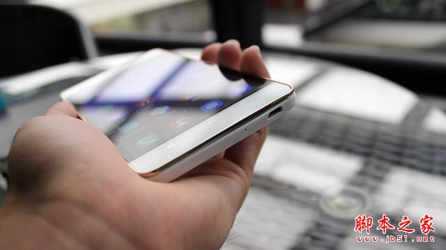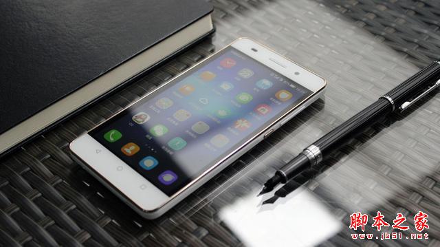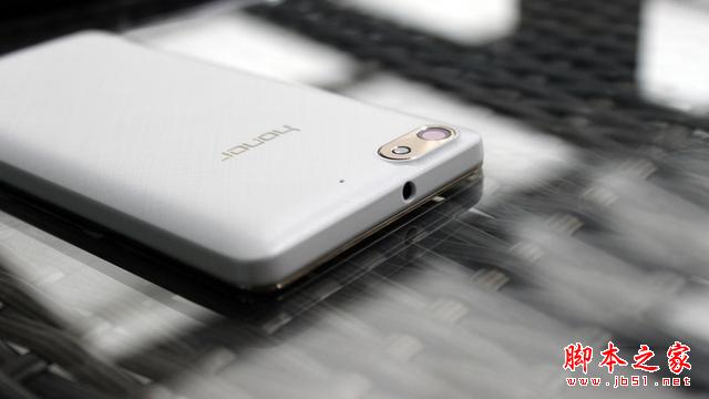 荣耀4C的正面板还采用了淡金色的包边,也算是给正面略显单调的设计添加点活跃的元素。这样的处理似乎使得荣耀4C正面看起来更有轮廓感,而在视觉上荣耀4C也显得更纤薄。