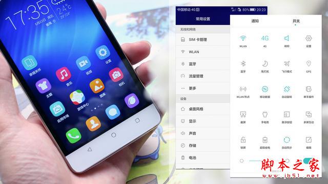 EMUI3.0整体设计偏向于扁平化和加入更多的点线圈设计元素。整体UI界面也相对好看一点,但图标和界面的细节处理还是不够细腻。下拉菜单、设置界面及多数自带应用界面均采用了留白和扁平化的处理,整体看起来较为简洁。此外,其自带的多数应用了采用了偏平的界面设计,自带应用的界面处理似乎要比系统UI界面来得细腻好看。我只能说,内在固然重要,但也得出得厅堂啊。