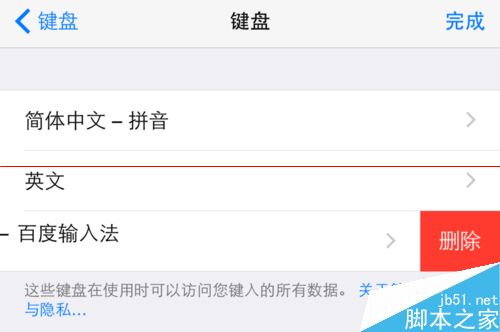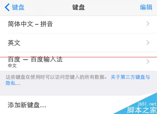 7、由于出现 iPhone 不能输入汉字的问题与在 iPhone 上安装的第三方输入法有一定的联系,如果你经常遇到这样的情况,可以在 iPhone 上删除当前已经启用的第三方输入法,使用苹果手机自带的输入法。