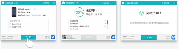 1、基于越狱的特殊性,越狱前请提前备份重要数据。如您需要升级至iOS8.3系统后越狱,可使用太极刷机大师保数据升级的模式更新至iOS8.3系统后越狱。