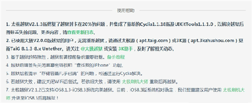 今天,太极团队更新了iOS 8.3越狱工具,最新版本是V2.1.3。修复了越狱卡20%、4S越狱后启动时间过长等问题。