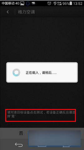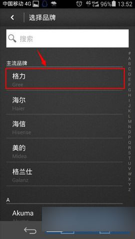 2)接着选择品牌如【格力】,根据提醒校对设备。PS:校对时可能需要多试几次。(如下图)
