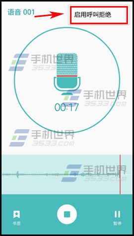 3)点击【启用呼叫拒绝】,录音界面将显示红色的【拒绝】图标。当对方拨打你的电话时,将提示“您拨打的电话正在通话中”。(如下图)