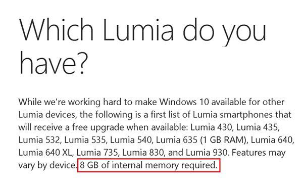 8月26日消息,昨天报道了标配4GB存储的Lumia530设备可能无法升级Win10 Mobile,因为微软官方页面显示升级Win10 Mobile要求手机存储不少于8GB。