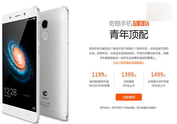 1199元起 360奇酷手机青春版官网已开启预约