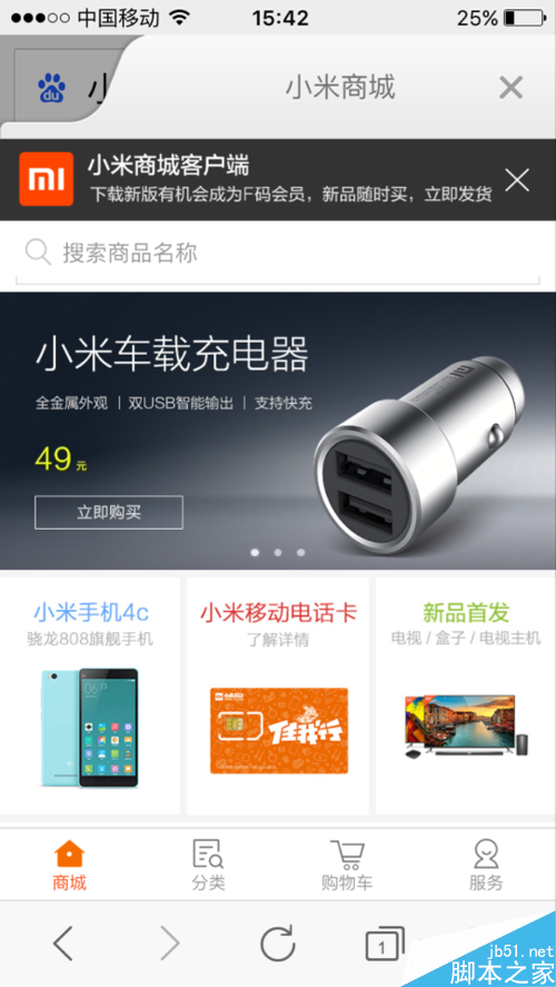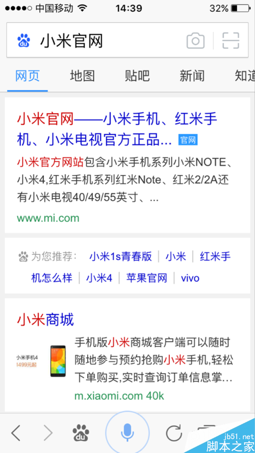 2.在百度上输入:小米官网,进行搜索,搜索结果点击第一个