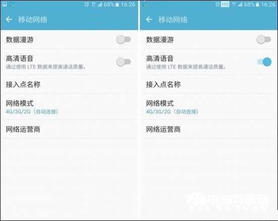 2、手机SIM运营商支持VLOLTE服务,也就是必须是4G卡。然后,从手机主页设置—移动网络—高清语音,开启即可使用VOLTE服务,如图所示: