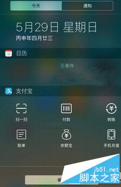 3、最后就可以在在“通知中心”中调出支付宝界面