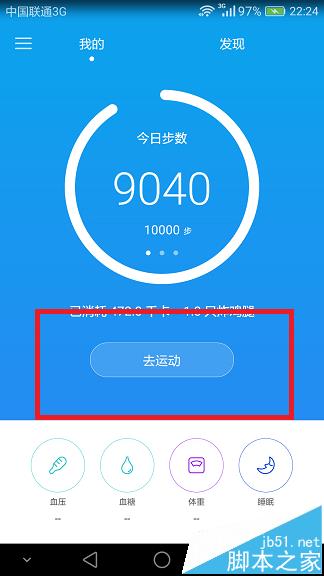 1、打开手机,点击运动健康,进入运动健康界面,点击去运动,如图所示;