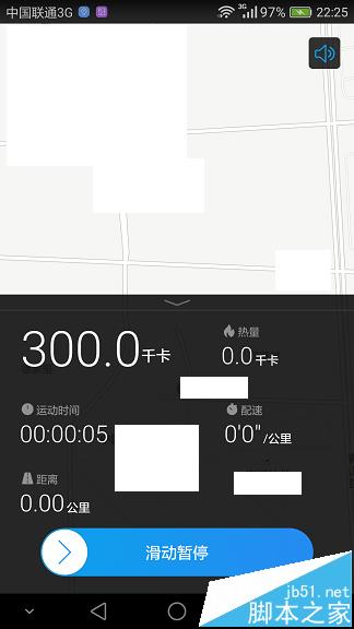 6、设置完成后,点击运动,弹出地图,此时,各项数据也开始计数;