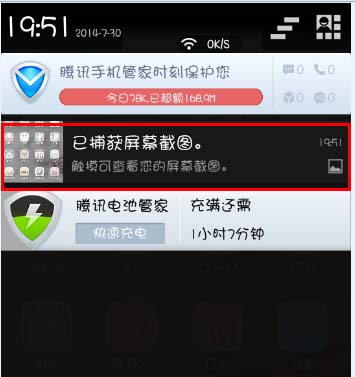方法一:往下拉任务栏,你会看到”已捕获屏幕截图。触摸可查看您的屏幕截图。”点击此处,你的截图就出现了。