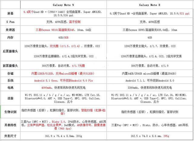 三星note9和note8区别对比评测