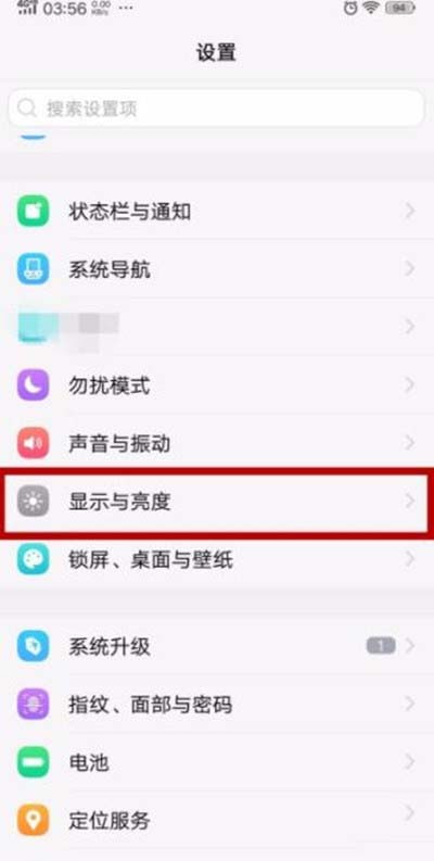 2、在设置菜单下找到并点击进入【显示与亮度】。