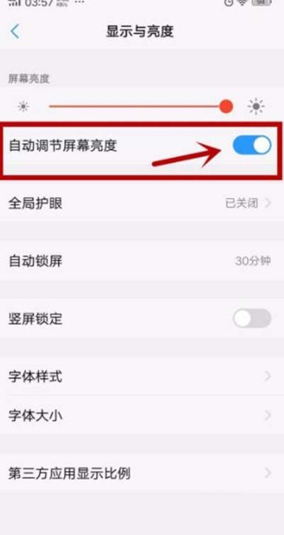 3、最后点击关闭【自动调节屏幕亮度】的开关即可