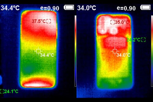 发热表现还不错,在连续进行了两局不同游戏测试之后,手机本身依旧维持在仅仅是温热的状态,握持的热感没有太过强烈,实测其正面最高温为37.5℃,背面最低温35.0℃。