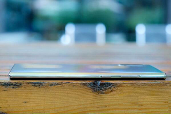 三星note10取消了Bixby快捷键,而是将电源键和Bixby键合二为一共同放置在了机身左侧,其上是一个一体式音量加减键。