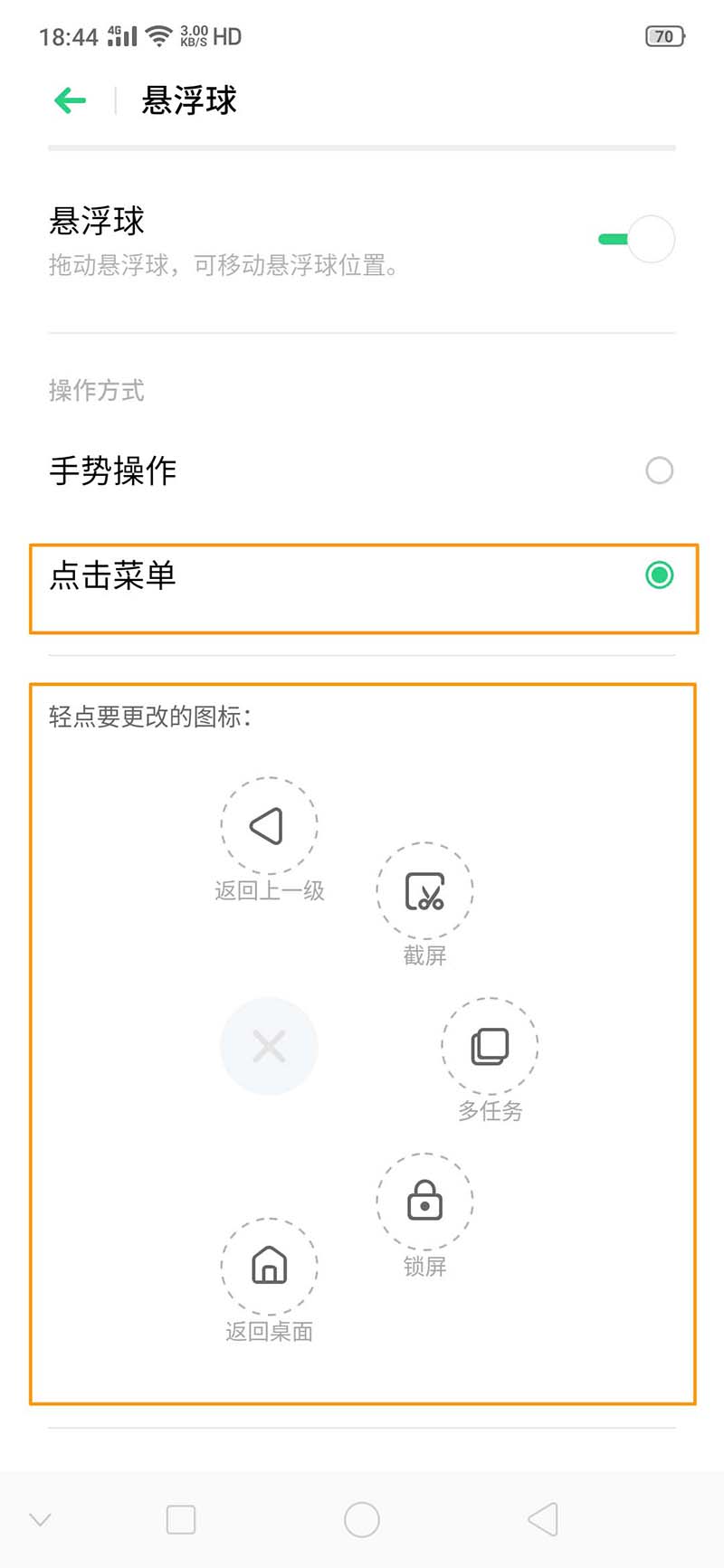 2、打开【悬浮球】功能后就可以设置悬浮球相关操作方式。