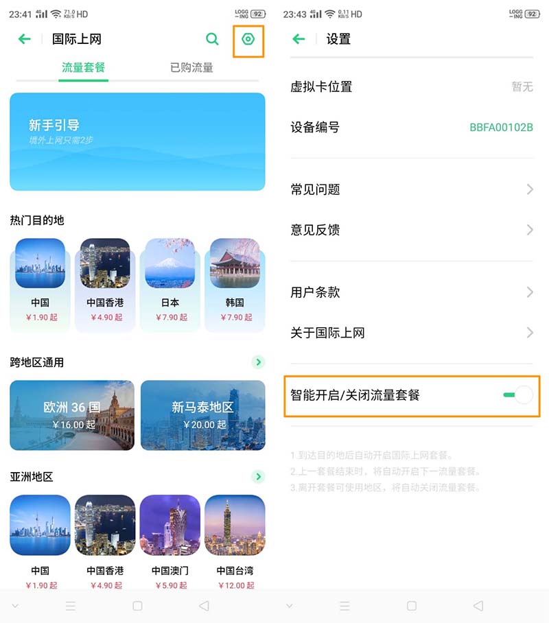 OPPO Reno Ace国际上网好用吗? OPPO漫游流量的购买方法
