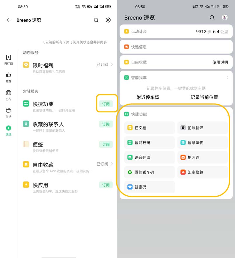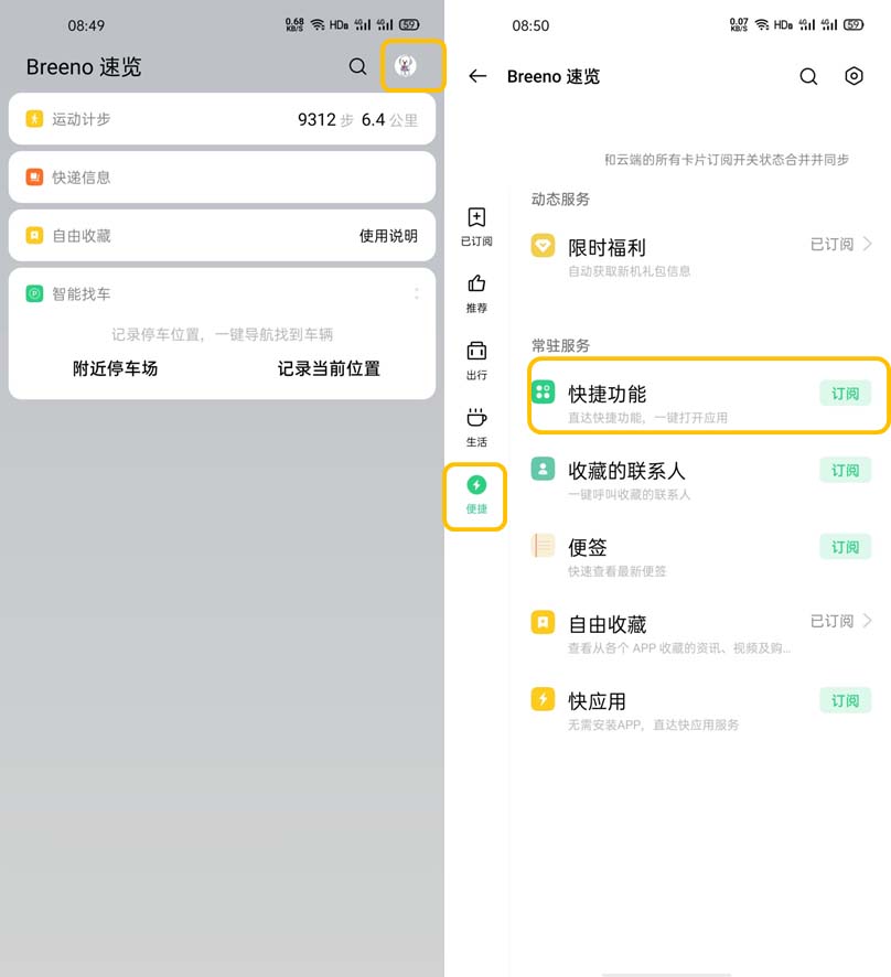 2、点击“订阅”来开启【快捷功能】,再通过手机桌面负一屏就可以查看到咯。