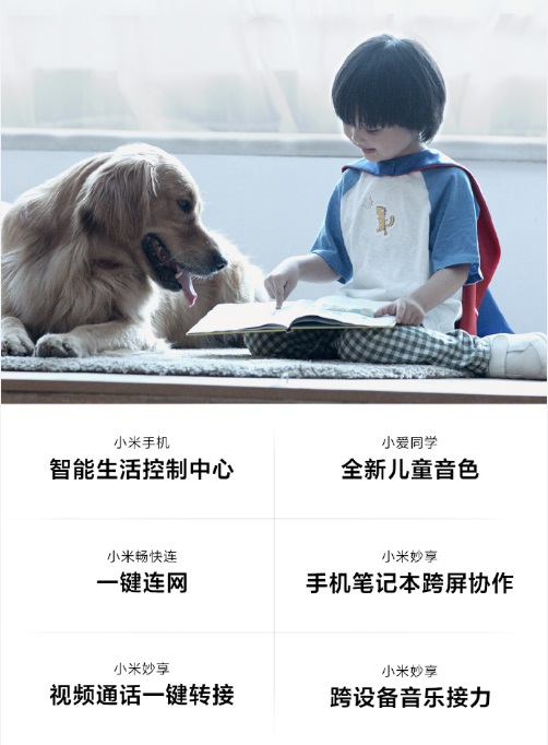 小爱同学智能模式,一句话解决复杂操作,控制全家智能设备。小米碰碰贴2,一贴一碰,操作搞定,支持小米妙享及控制。全新童声识别,通过声音识别儿童,主动过滤不良内容,推荐优质内容。