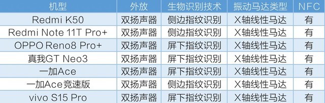 依次为OPPO Reno8 Pro+、vivo S15 Pro、Redmi K50、Redmi Note 11T Pro+、一加Ace、一加Ace 竞速版、真我GT Neo3