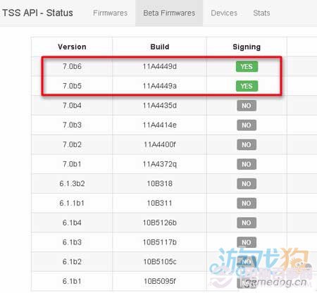 如图所示,目前iOS7 Beta6与iOS7 Beta5官方验证都是开通状态,若iOS7 Beta6的童鞋想刷回iOS7 Beta5的,现在马上就可以降级了。