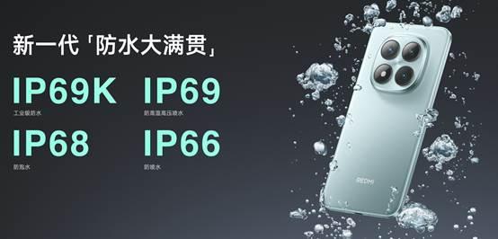 2025年8月21日,REDMI Note 15系列正式发布,在耐摔品质、耐久防水、充电续航、屏幕和外观均实现了全面跃升,为用户带来了耐用品质、实战之王的小金刚。REDMI Note 15 Pro+ 正背双面升级,配备龙晶玻璃 + 超韧玻纤,抗摔性能相比上代提升10倍 ,获得行业首个 SGS 整机高强度防护金标五星认证。通过IP66 & IP68 & IP69 & IP69K 防水大满贯认证,并特别引入防水组合测试,模拟用户一年严苛使用后防水依旧给力,并通过行业首个 TÜV 南德五星长效防水品质认证,堪称同档最耐久防水。配备同档更强的续航组合,7000mAh 小米金沙江电池 + 90W 快充 + 22.5W 有线反充黄金续航组合 ,“既要电量大,也要充得快”。