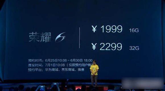 根据ROM存储空间不同,荣耀6可分为两种版本,其中16GB版,售价1999元,另外还有一种是32GB版,售价2299元。