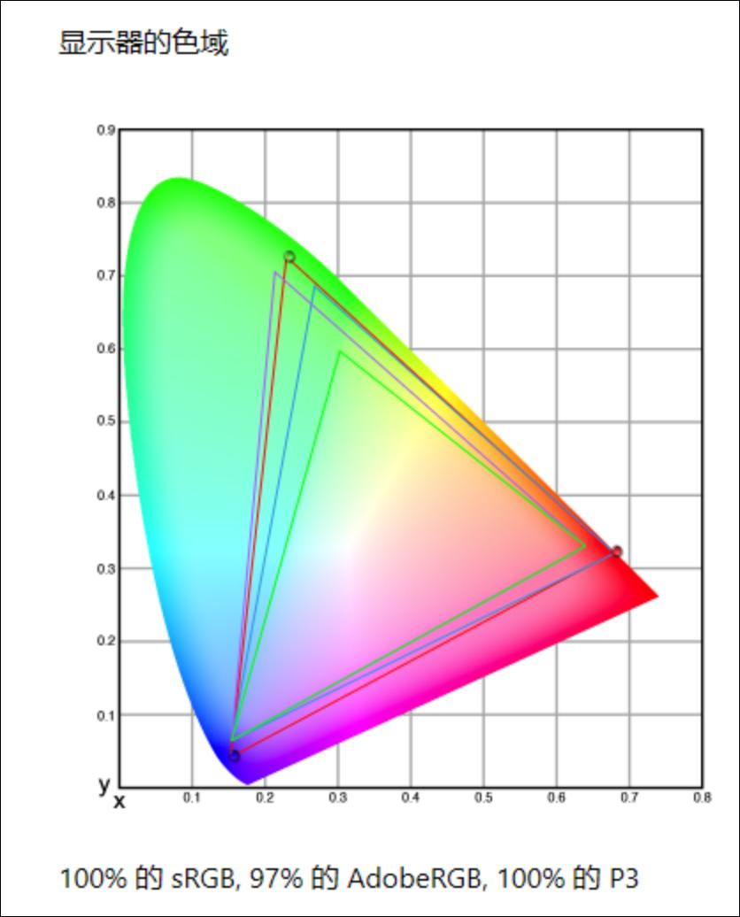 实测星Book Pro 14色域和色准:100%sRGB、100%P3、97%AdobeRGB,妥妥的广色域屏。笔记本屏幕出厂的色准平均值为0.94,SDR模式下最大亮度为421尼特,应对日常使用、视频播放、图片处理、都能胜任,对于有DCI-P3色域需求的用户也没有问题。