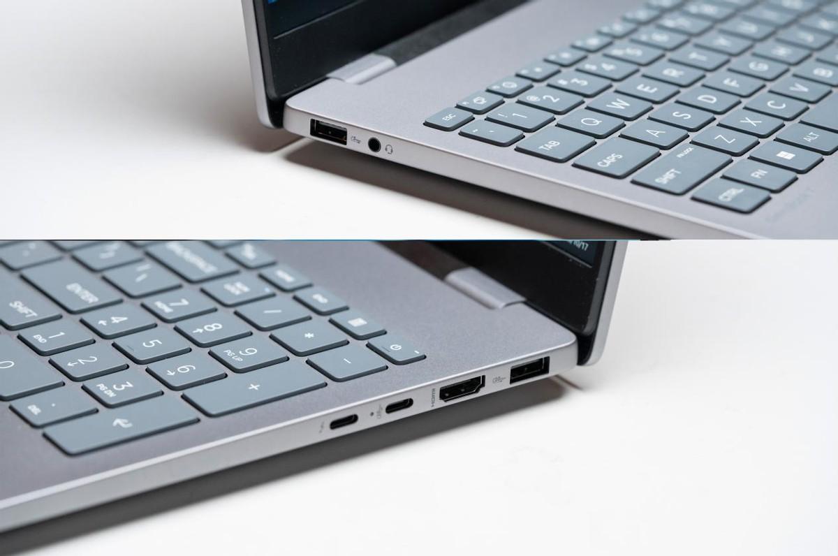 齐整无缺的机身接口一直是惠普星Book Pro系列机型的主要卖点之一,对于星Book Pro 14/16,大家不用纠结,它俩的接口规格和配置一模一样:机身左侧配备了一个USB-A口、3.5mm音频口;右侧配备了一个40Gbps雷电4、10Gbps的全功能USB-C、10Gbps USB-A以及HDMI视频口,属于轻薄本经典的双USB-C+USB-A口组合,并且规格很高,无论是用A口还是C口的移动硬盘,都不用担心传输速率不够。加上HDMI 2.1,视频扩展也没有短板。