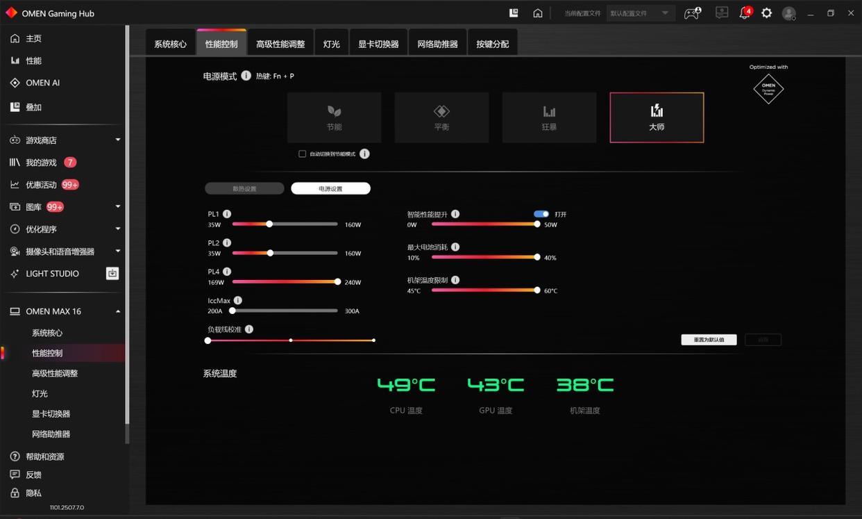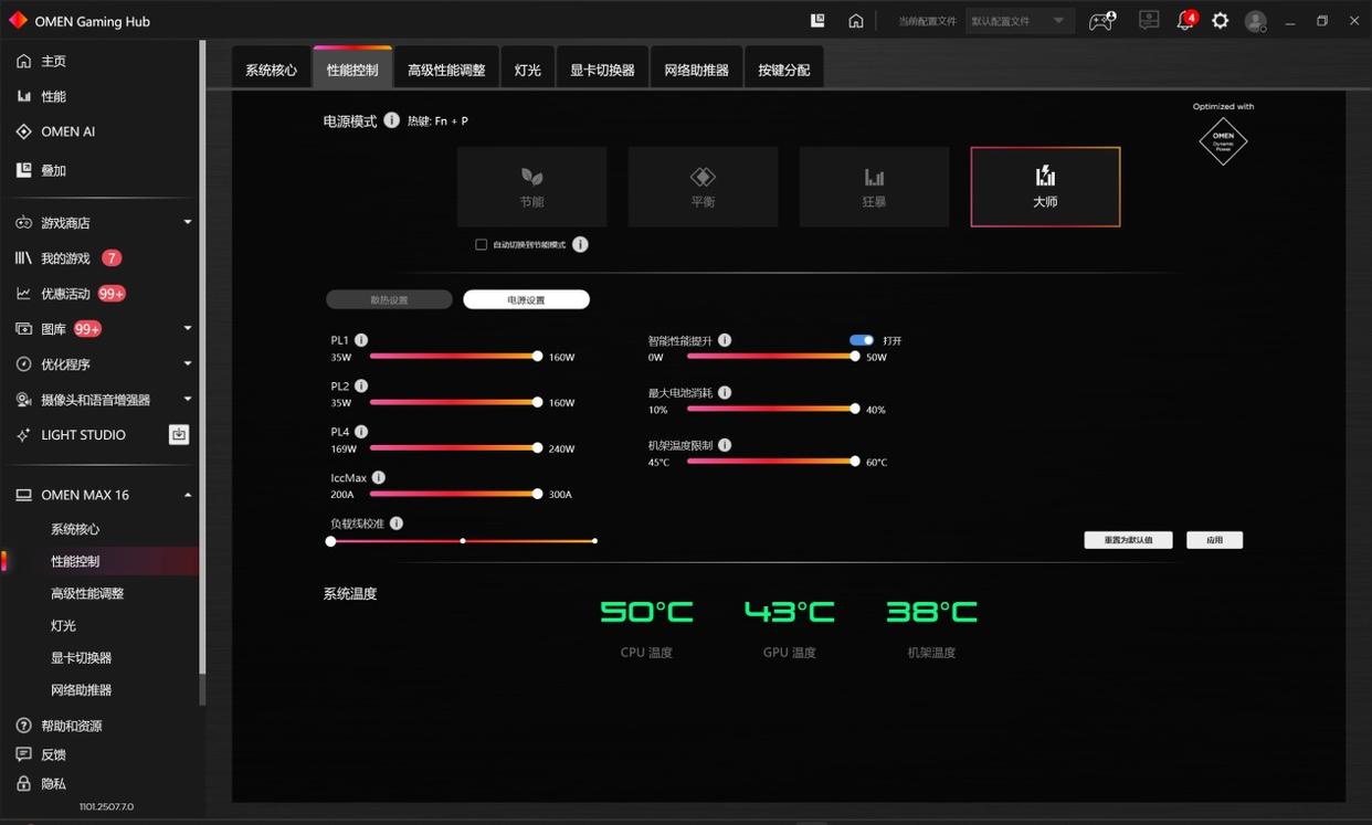 OMEN暗影精灵MAX的大师模式,其核心价值在于为不同用户群体提供了基于使用环境的底层参数调节自由,让硬件的性能释放更具灵活性。