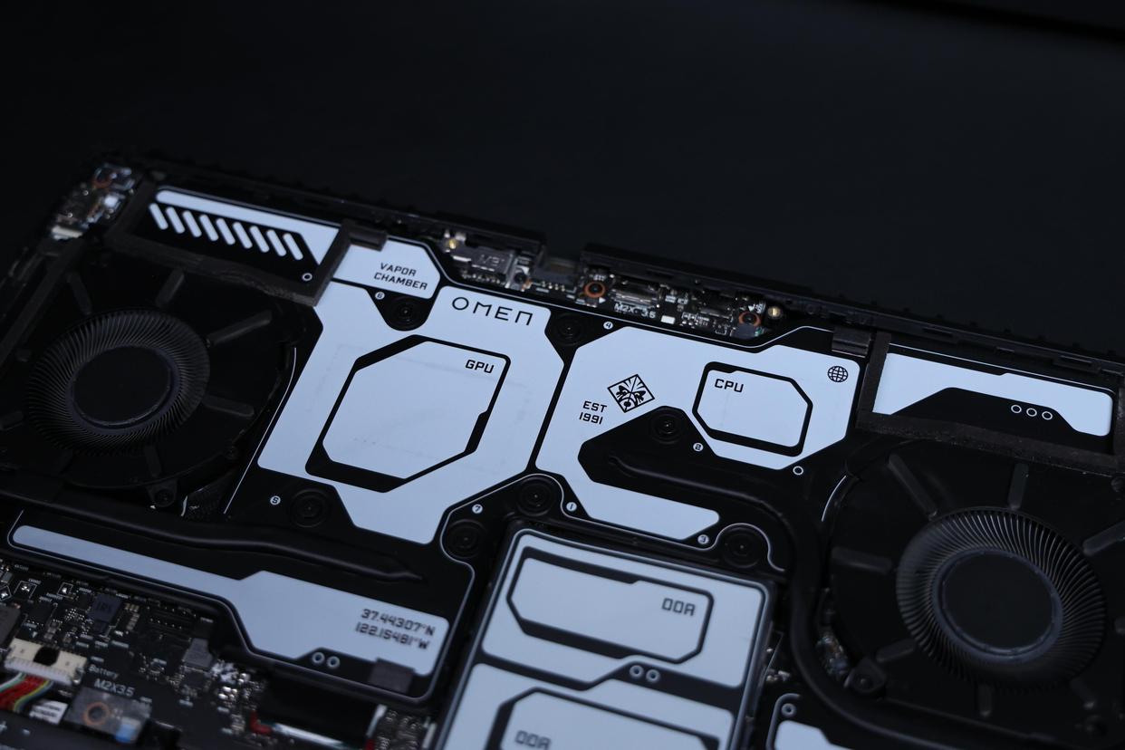 目前的游戏本市场同质化严重,核心的CPU和GPU本质均为AMD/NVIDIA/Intel所提供,只要是正经的一二线厂商均能拿到最新一代的芯片,想要在市面上脱颖而出,核心配置这种“你有我也有”的东西已经不能引起消费者的关注和喜好了,则要在其余方面发力开卷,就例如OMEN暗影精灵MAX,全新的酷凉风暴MAX采用均热板作为主要的热量传导介质,相比于常见的热管,大面积的均热板拥有更快速和更高效的热交换能力,再加上两个热管还可辅助机身内部供电等区域的散热,散热模组可轻松解热双核心250W的功耗。