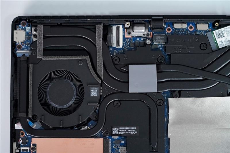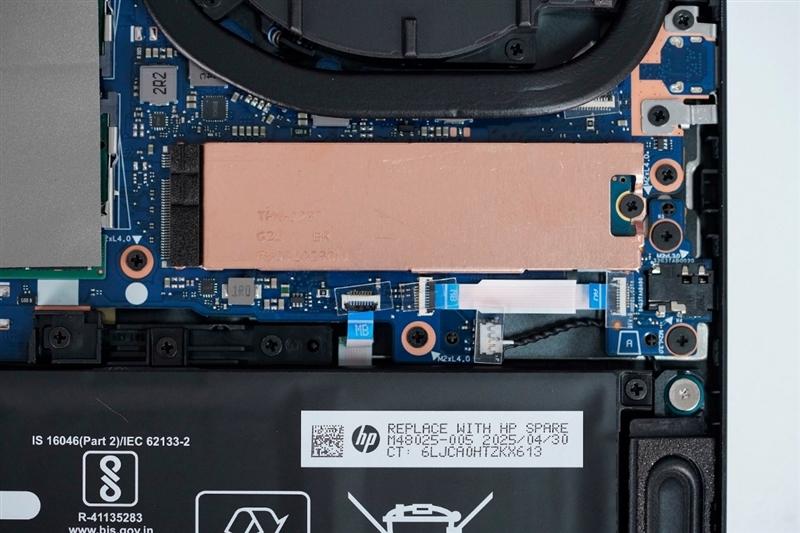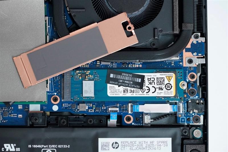 暗影精灵11右侧的SSD安装位置预装了一条来自铠侠的PCIe 4.0 SSD,容量为1TB,并配备了纯铜散热片。