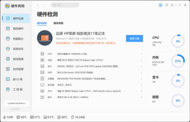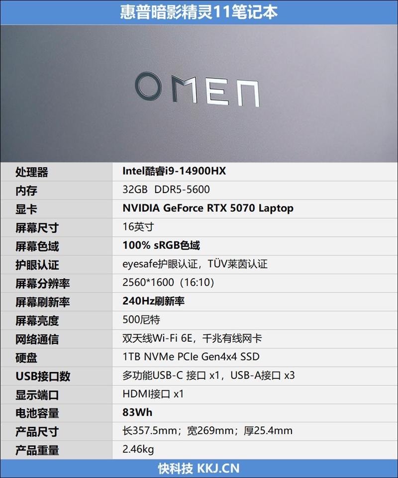 本次来到评测室的是OMEN暗影精灵11的顶配型号,搭载i9-14900HX+RTX 5070,可以说是一线厂牌中的性价比之选了,本次我们将从其外观、硬件配置以及游戏实测等方面来进行全方位的评测。