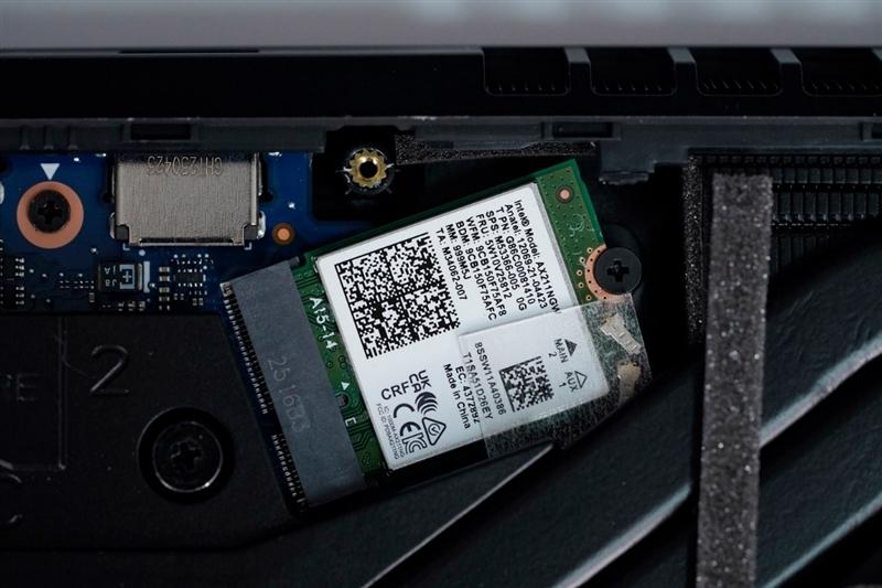 暗影精灵11笔记本主板顶部倾斜安装的Intel AX211无线网卡。