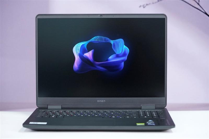 B面屏幕部分则搭载了一块16英寸电竞屏,分辨率为2.5K(2560×1600),支持60~240Hz可变分辨率,最高亮度达500nits,即便在强光下也能看清画面细节,16:10的黄金比例以及高达89%的屏占比显著拓宽视野,给予玩家更具沉浸的视觉体验。上方布置有摄像头和阵列式麦克风,屏幕下方印有OMEN字样。