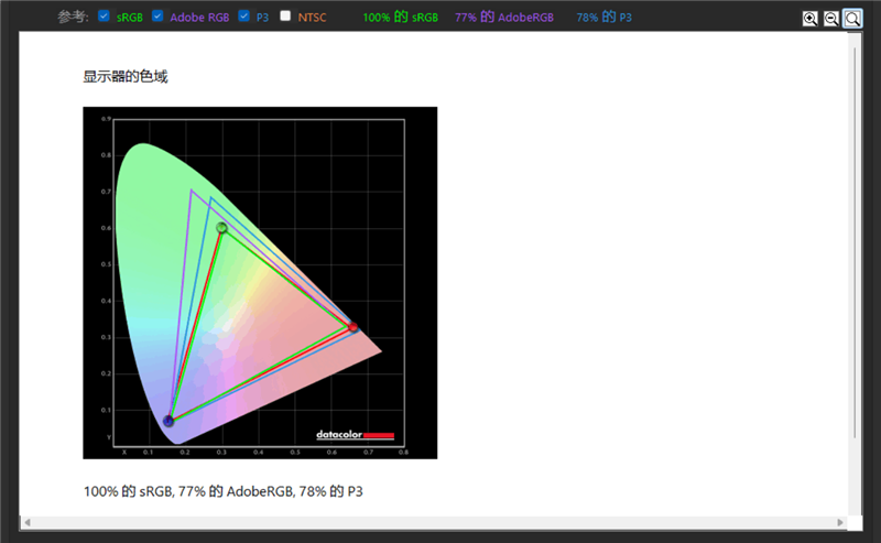 暗影精灵11笔记本屏幕实测色域可覆盖100%的sRGB色彩空间。
