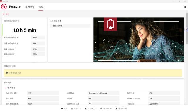 在“智能模式”和“最佳能效”、集显模式、50%屏幕亮度以及飞行模式下,我们通过UL Procyon的“本地视频播放”场景来测试,最终荣耀MagicBook Pro 16 2025 HUNTER取得10小时5分的亮眼成绩,表明其能够满足一天移动办公的需求。