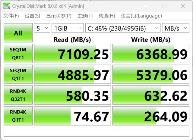 内存方面,荣耀MagicBook Pro 16 2025 HUNTER配备32GB LPDDR5X 8000双通道内存,高频内存不仅能够提升系统响应速度,还能在集显模式下为核显提供更大的显存带宽,提升图形性能。从我们的测试来看,这台机器的内存读取速度达到73539MB/s,写入速度达到85684MB/s。