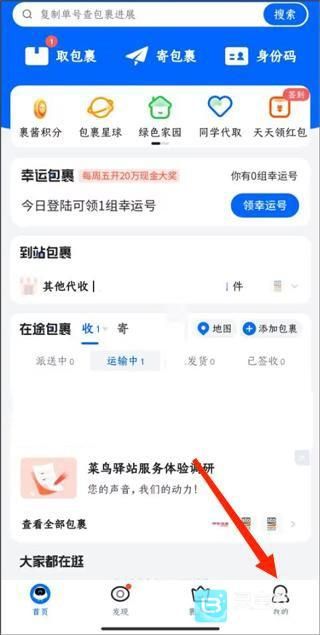 1、打开菜鸟App,点击右下角【我的】进入个人中心。