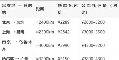 - 比公路托运便宜15%–30%(尤其3000km以上线路优势明显)。