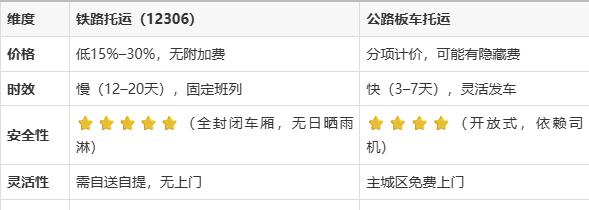 四、铁路托运 vs 公路托运 对比