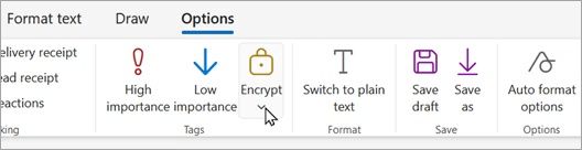 - 发件人端调整:建议发件人在撰写邮件时,通过“选项(Options)”功能区下的加密按钮发送邮件,而非使用“文件”菜单中的设置。
