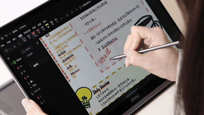 将设备翻转至平板模式,在OneNote上速记灵感,笔尖划过屏幕,几乎感受不到延迟,4096级压感带来的笔触变化细腻而真实,媲美真实纸笔的流畅。