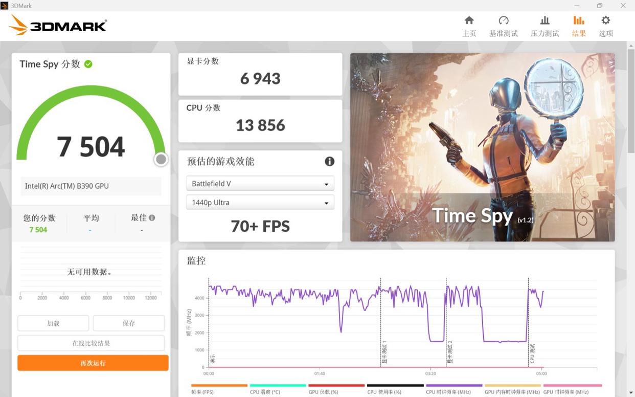 ⬆效能模式,TimeSpy显卡分6943分