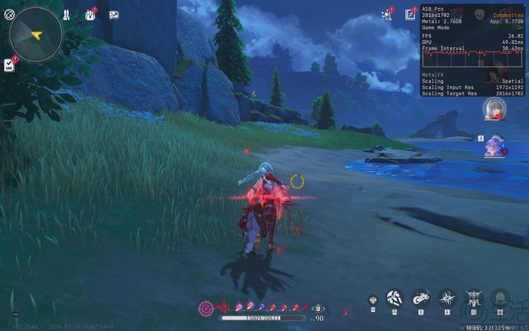 在将全部的缓存下载完成后,这个版本的《鸣潮》程序体积达到了惊人的120GB以上,妥妥的算是“3A大作”了。画面选项全开的它,对于MacBook Neo来说确实压力也比较大。尽管我们开启了游戏选项里的60FPS模式,但MacBook Neo在跑图中帧率也只能达到30FPS左右。要想流畅游玩,降低画质看来不可避免。