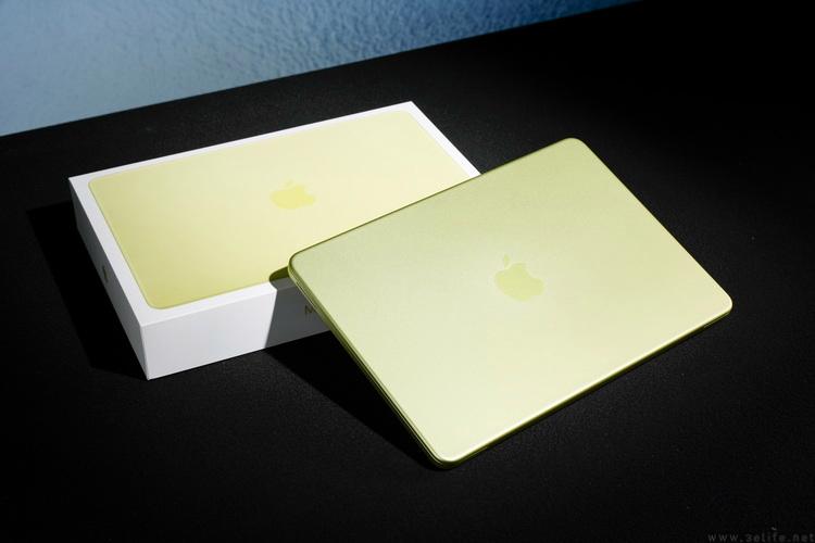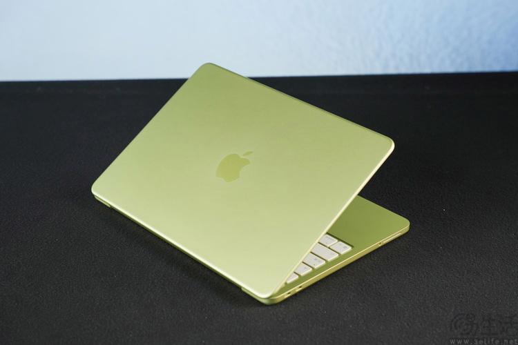 此次我们拿到的是8GB+256GB版本、柑橘黄配色的MacBook Neo。虽然官方将这个配色成为“柑橘黄”,但它看起来其实是一种介于黄色和绿色之间的色泽,与其说像“柑橘”,不如说更像水彩笔里的荧光黄色。